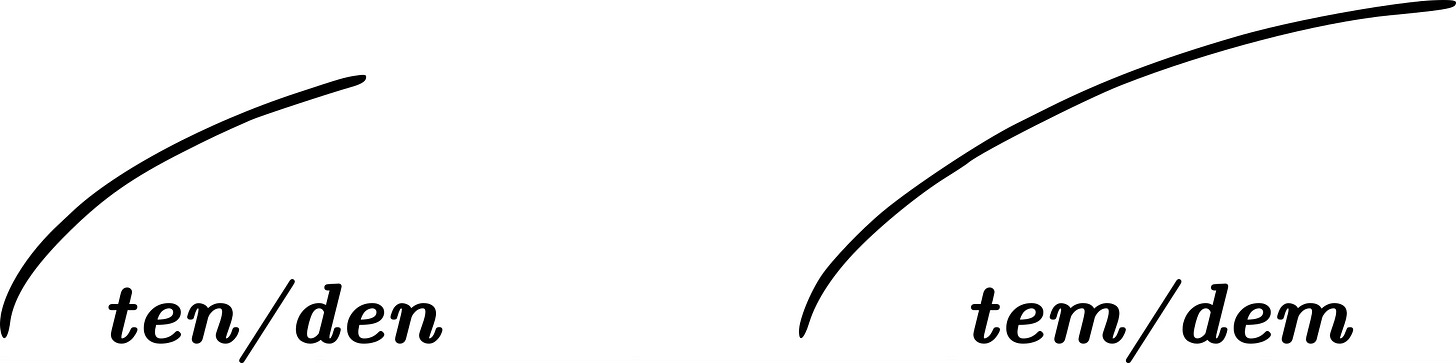 Lesson 34: How to use the [ten/den] and [tem/dem] blended syllables in Gregg Shorthand